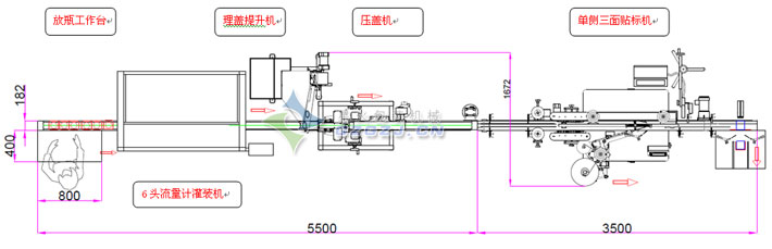 6頭食用油灌裝壓蓋三面貼標噴碼生產線設計方案圖